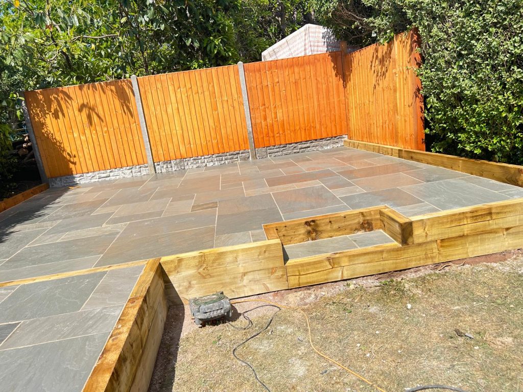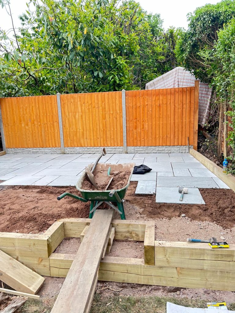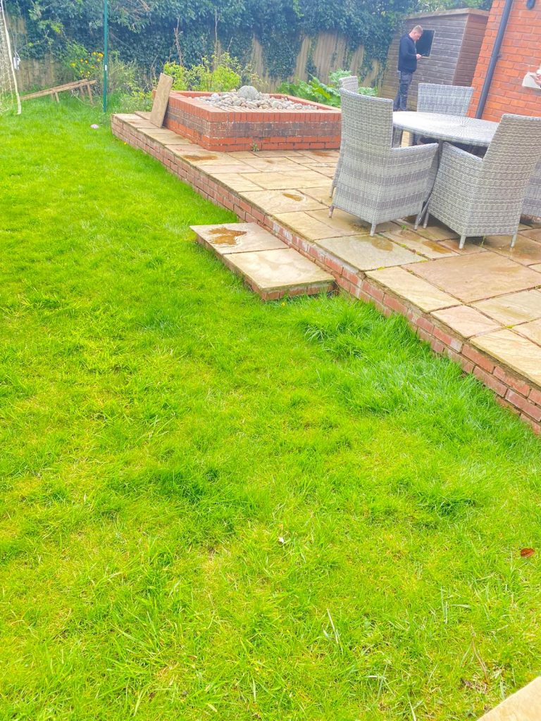 A garden rip out, redesigned to have a lovely new retaining wall round the perimeter of the garden, with a new porcelain patio and new planters, top off with a brand new lawn.